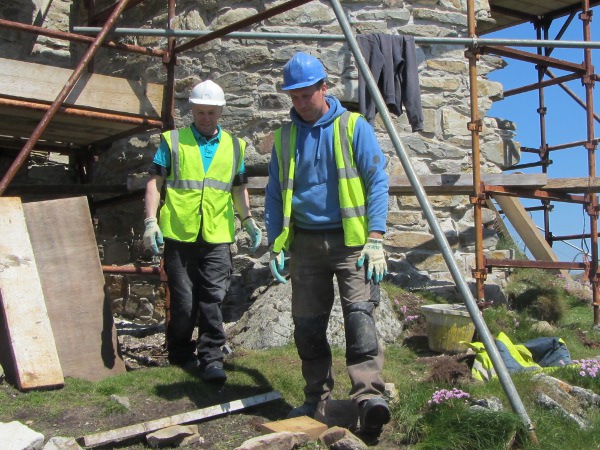 Stonemason, Seamus Doherty, left and Builder, John (Eddie) Doherty, right, selecting stones